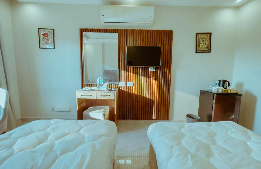 Las habitaciones aptas para alérgicos del Pyramids Rose View Inn combinan comodidades como climatizador con instalaciones modernas como TV de pantalla plana con canales vía satélite. También cuentan con una zona de comedor y una zona de estar. Las habitaciones están equipadas con servicio de tetera/cafetera, así como con un escritorio. Las instalaciones del baño incluyen un bidé, ducha a ras de suelo y un inodoro separado, además de comodidades como secadores de pelo y toallas de baño.
